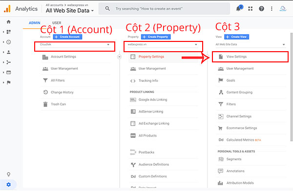 Sau khi tắt hộp thoại User Management, cũng ở hộp thoại Admin, ở cột 3, bạn chọn View Setting (Cài đặt chế độ xem) -> Copy View ID (ID chế độ xem)